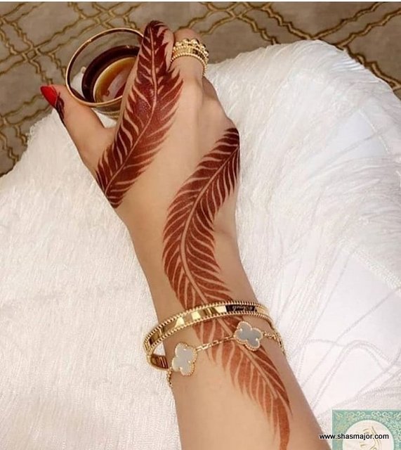 3. Love little fashion? And not too much patter then check this amazing easy mehndi design that you can have and still look great as it has the feather type design starting from the tip of your finger forming a snake-like curve wrapping around your arm coming till your forearm giving you a great yet simple but beautiful mehandi.
