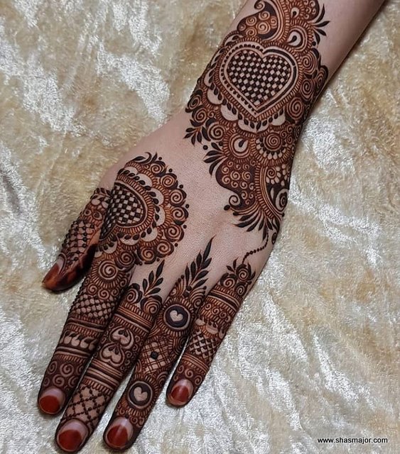 1. In Indian functions, mehndi plays a huge role to looks more beautiful and it’s part of our tradition to enhance our beauty, just keeping that in mind we have an easy mehndi design for you in the mehndi photo given below, here you will get an amazing flower design with heart shape design and dots to fill some gap and making it a beautiful design this is a great mehndi for family functions and for making your hand more beautiful.