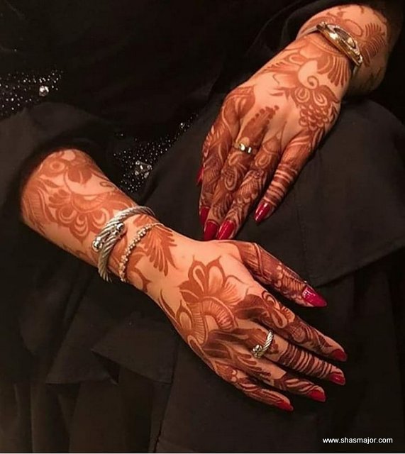 4. Here you get a beautiful design, a simple mehndi design for hands with peacock motif style and filling done with mehndi to highlighting the design going to the wrist to the tip of your finger this is really suitable design for the family occasion as it will look more dynamic with its simplicity making your mehndi design look more beautiful.
