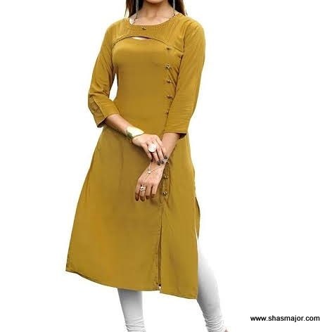 21. Want simple Kurti neck design and neck pattern, then check this amazing simple stylish Kurti with round neck and a cut design on the cleavage part of the Kurti and indo-western style side button design to enhance the style of this really great Kurti.