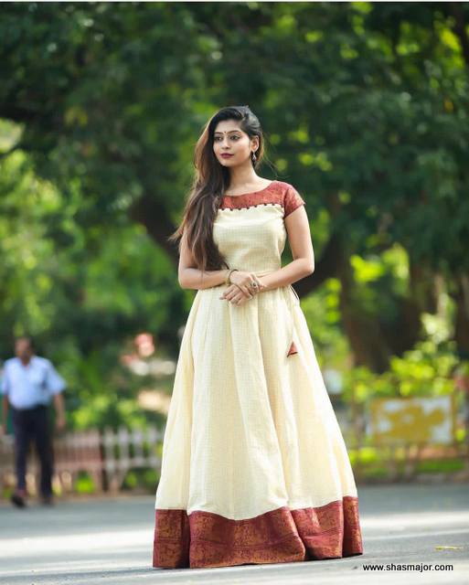 9. Love wearing a simple dress then this dress neck design will for sure attract your eye as open round neck shape give it a really stylish and beautiful finish and show off your neck and collar bone perfectly. this beautiful adorable cream color dress is a really great option for all the simple and elegant dress lovers.