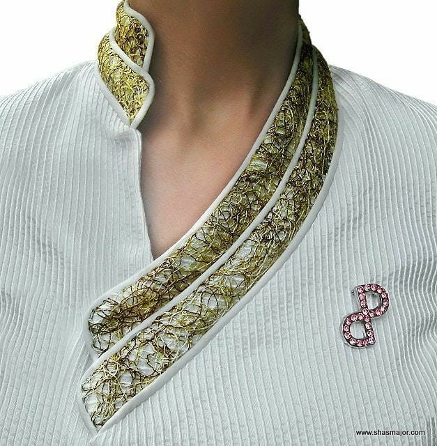 1. Being a part of this generation, you have to always be on style even though you are in some family function wearing a kurta, keeping that in mind we have a really great kurta neck pattern, this white kurta with a really great kurta neck design will give you fashion approach while being on a traditional side too, with threading design pattern work done on the kurta with golden and little black color making it a really great pattern design for this kurta.