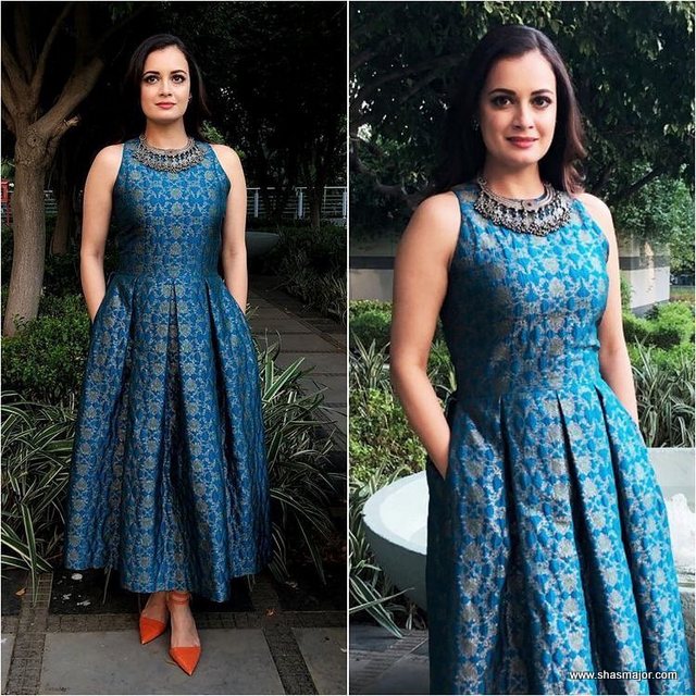 3. Having a lot of demand on the dress, this amazing light blue high neck suit design dress is a really great option for many girls as you can see a really great suit neck style in it with cut cold shoulder and beautiful floral design pattern on the dress itself. so if you are looking for something to wear for an occasion this may be the one you should approach for.